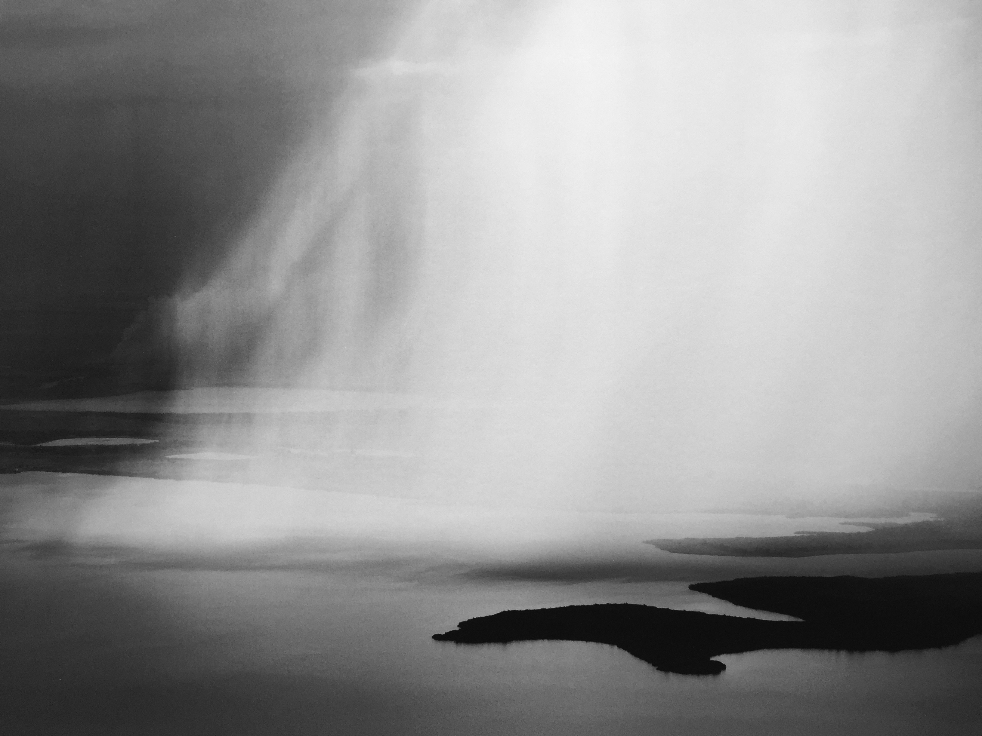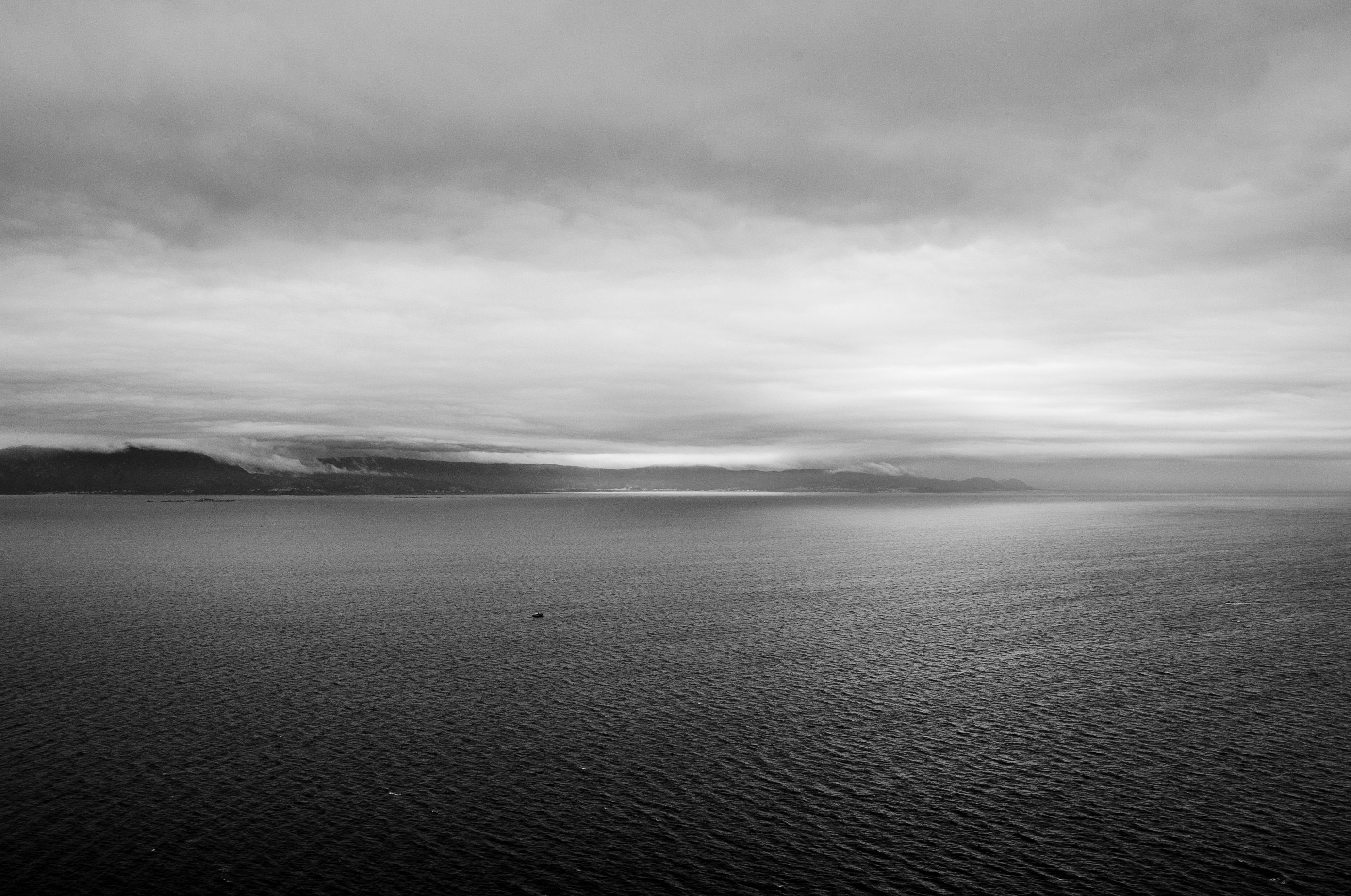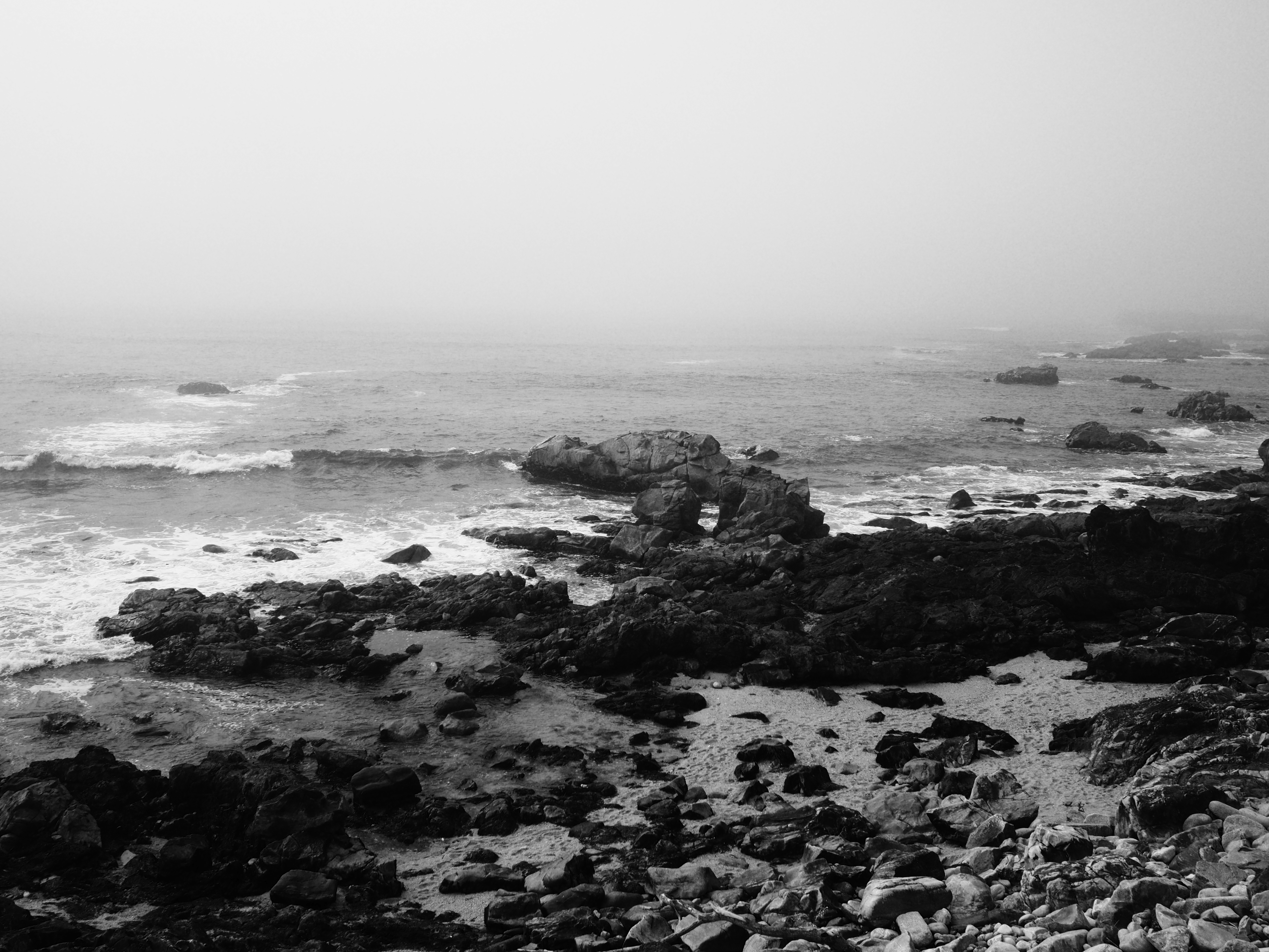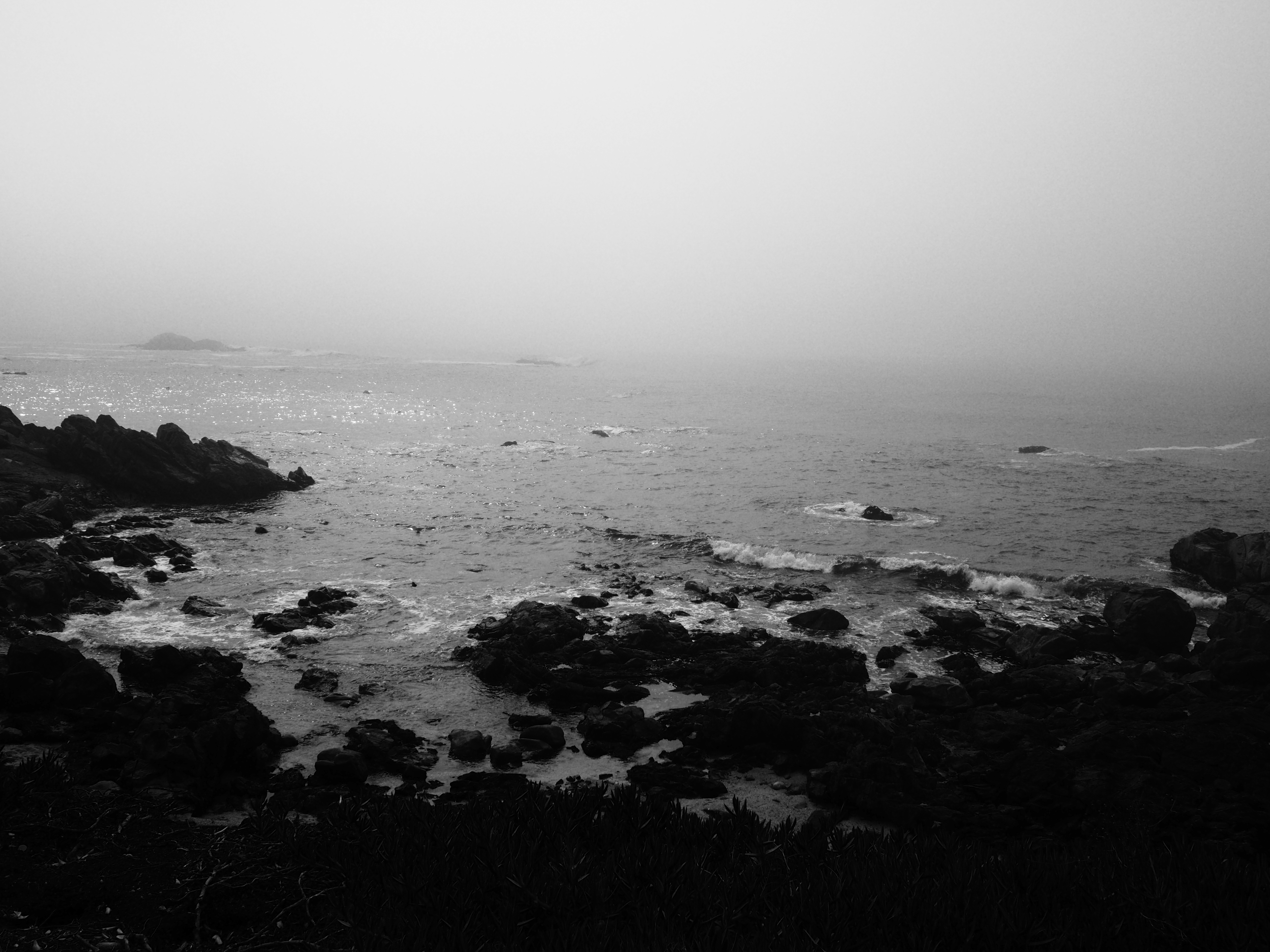 In black and white, the horizon becomes a thought,