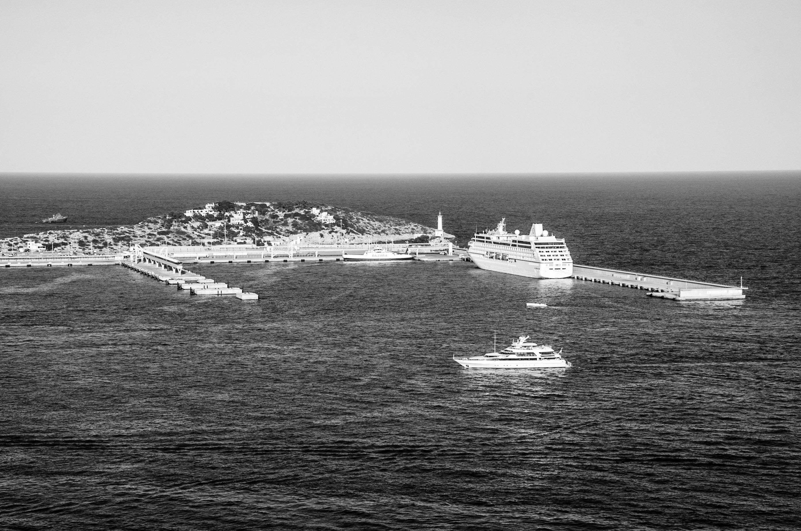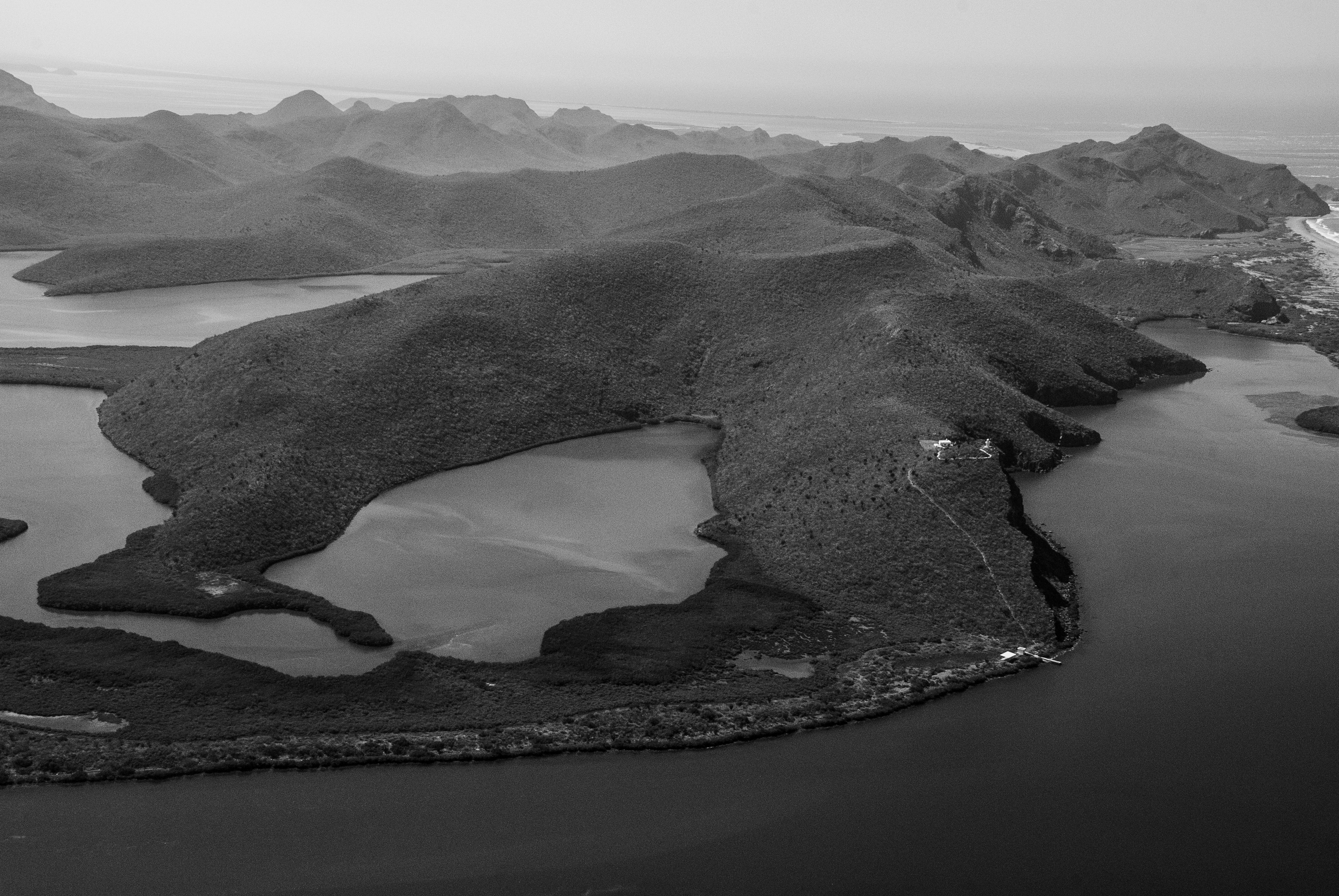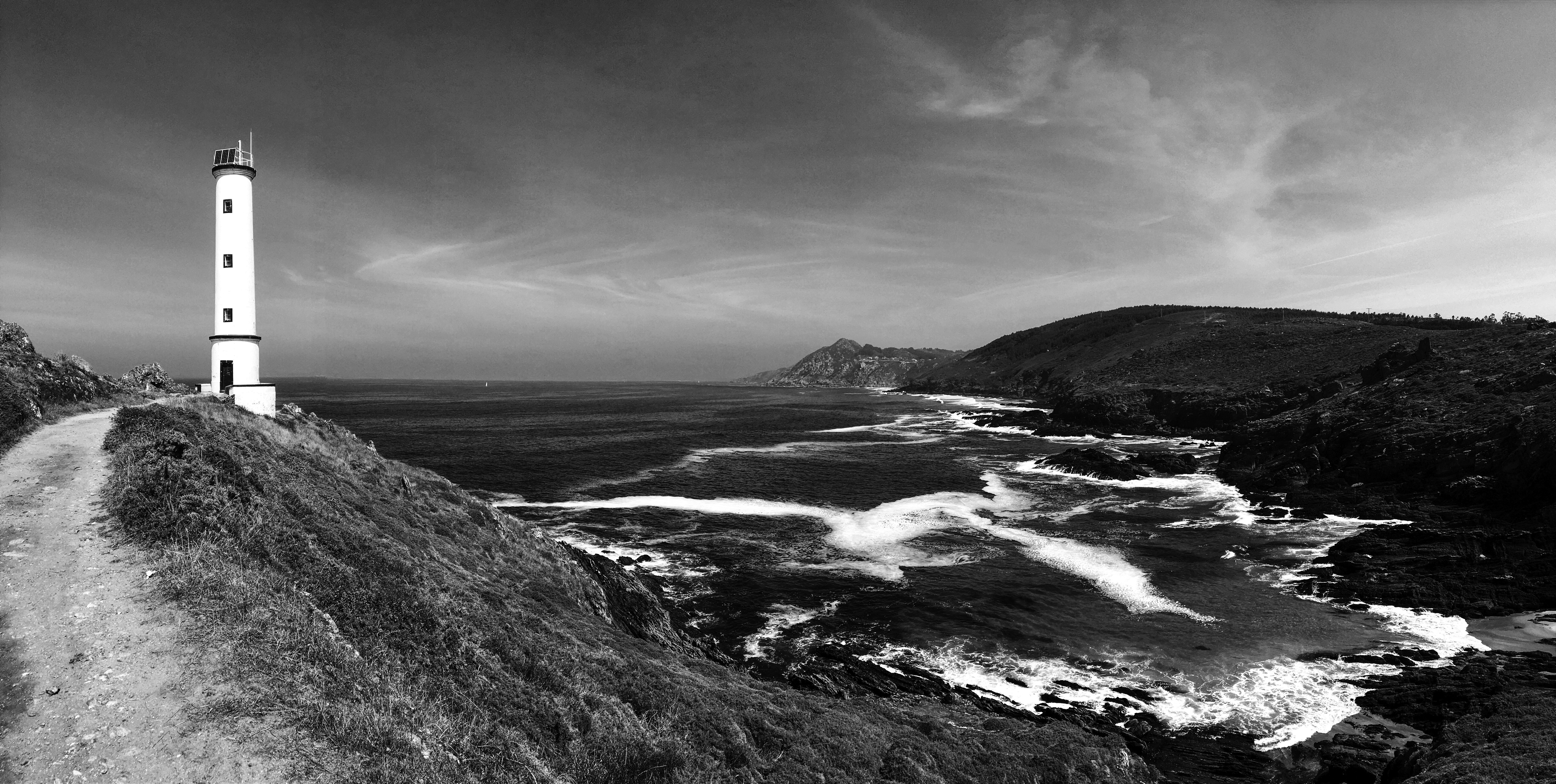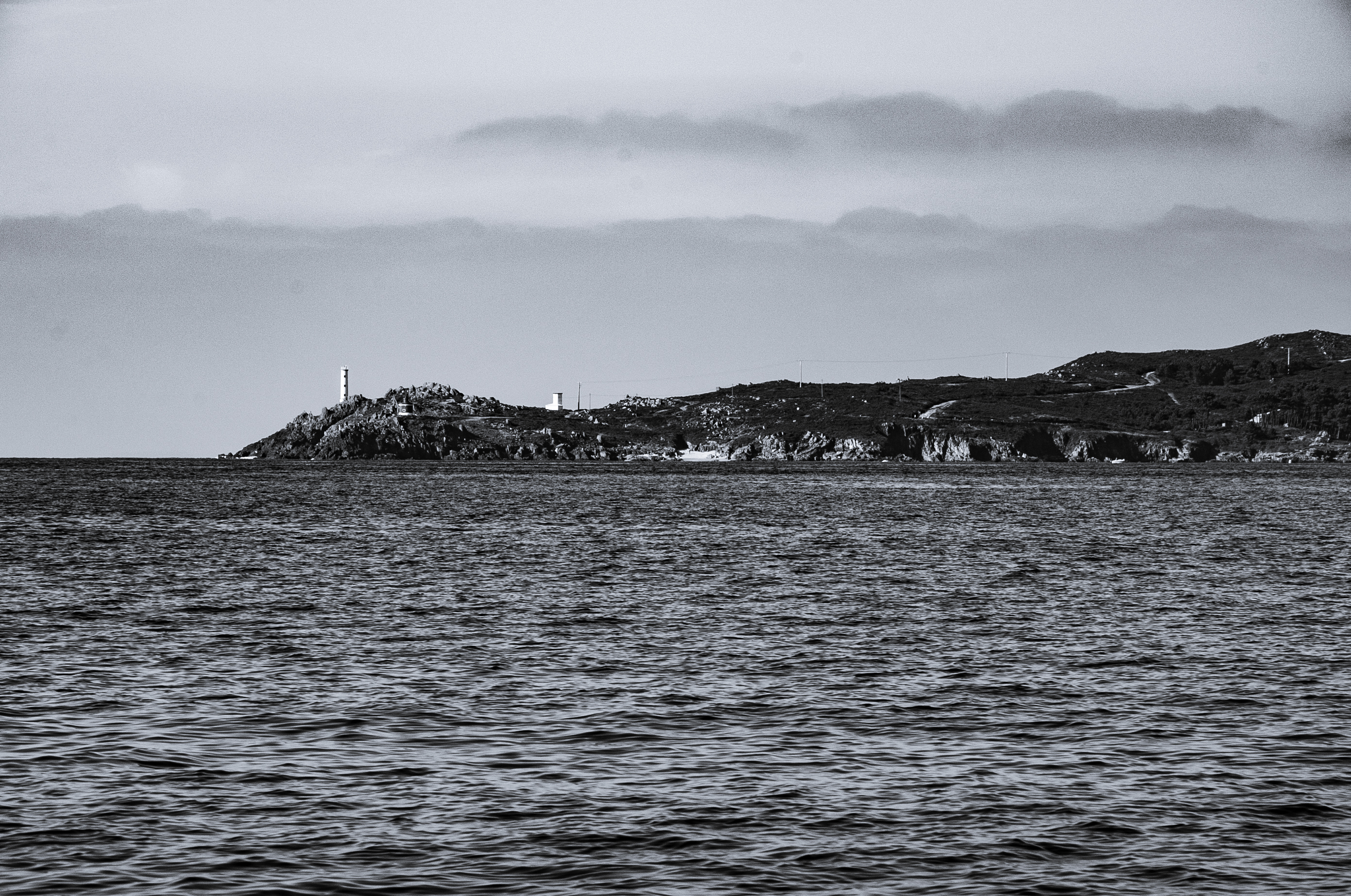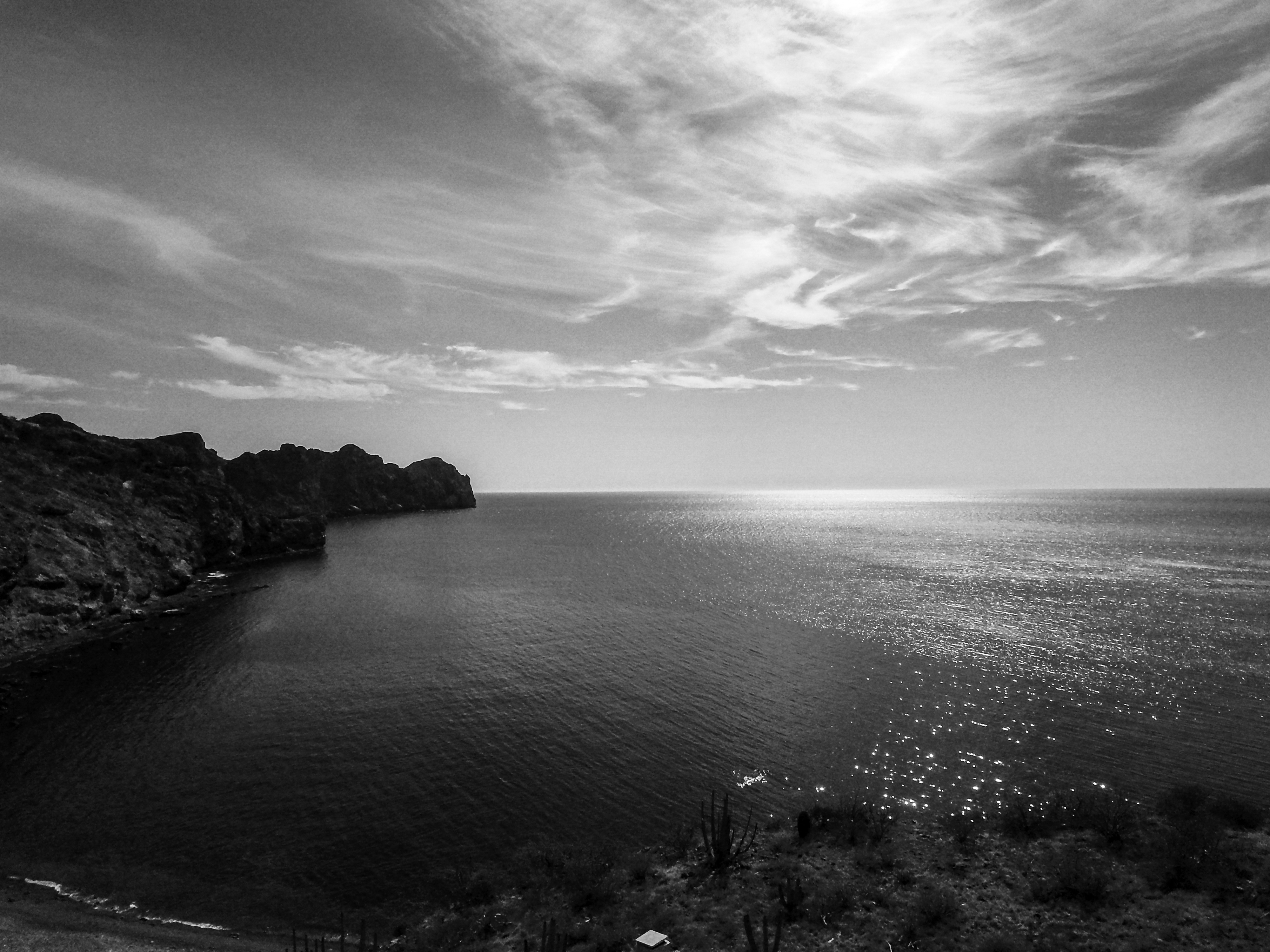 In black and white, the horizon becomes a thought,