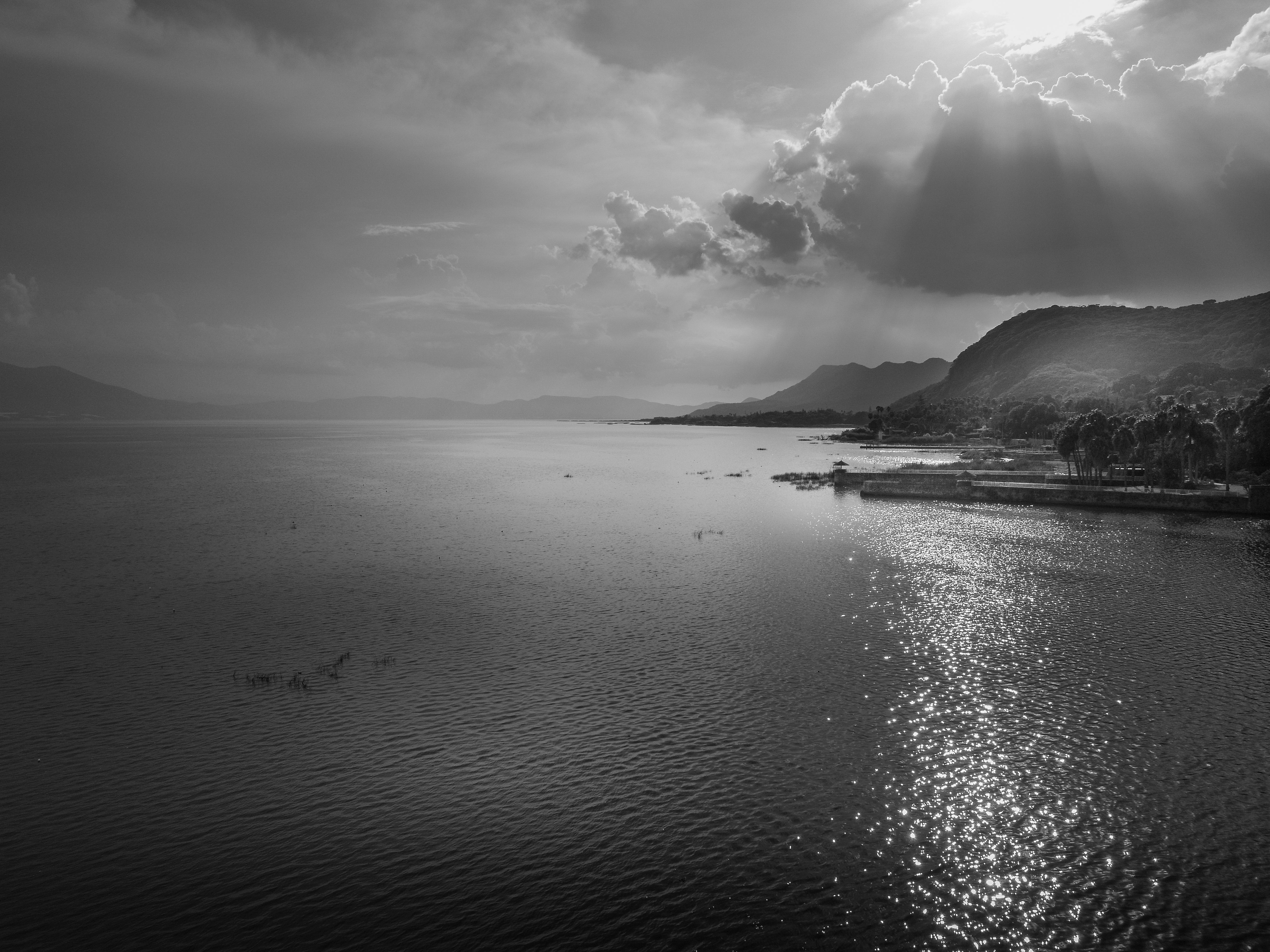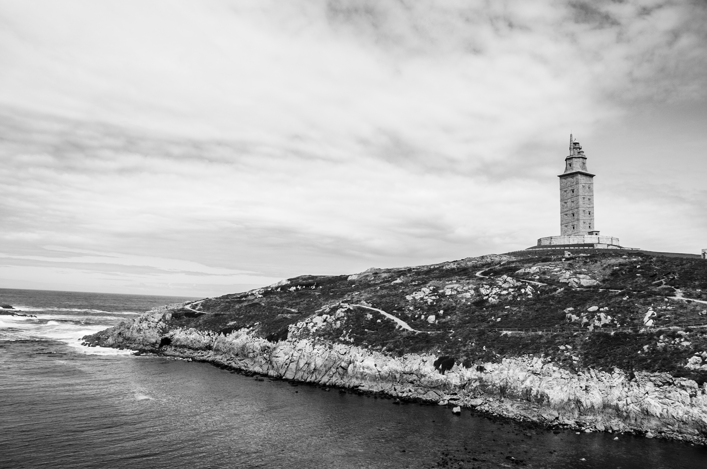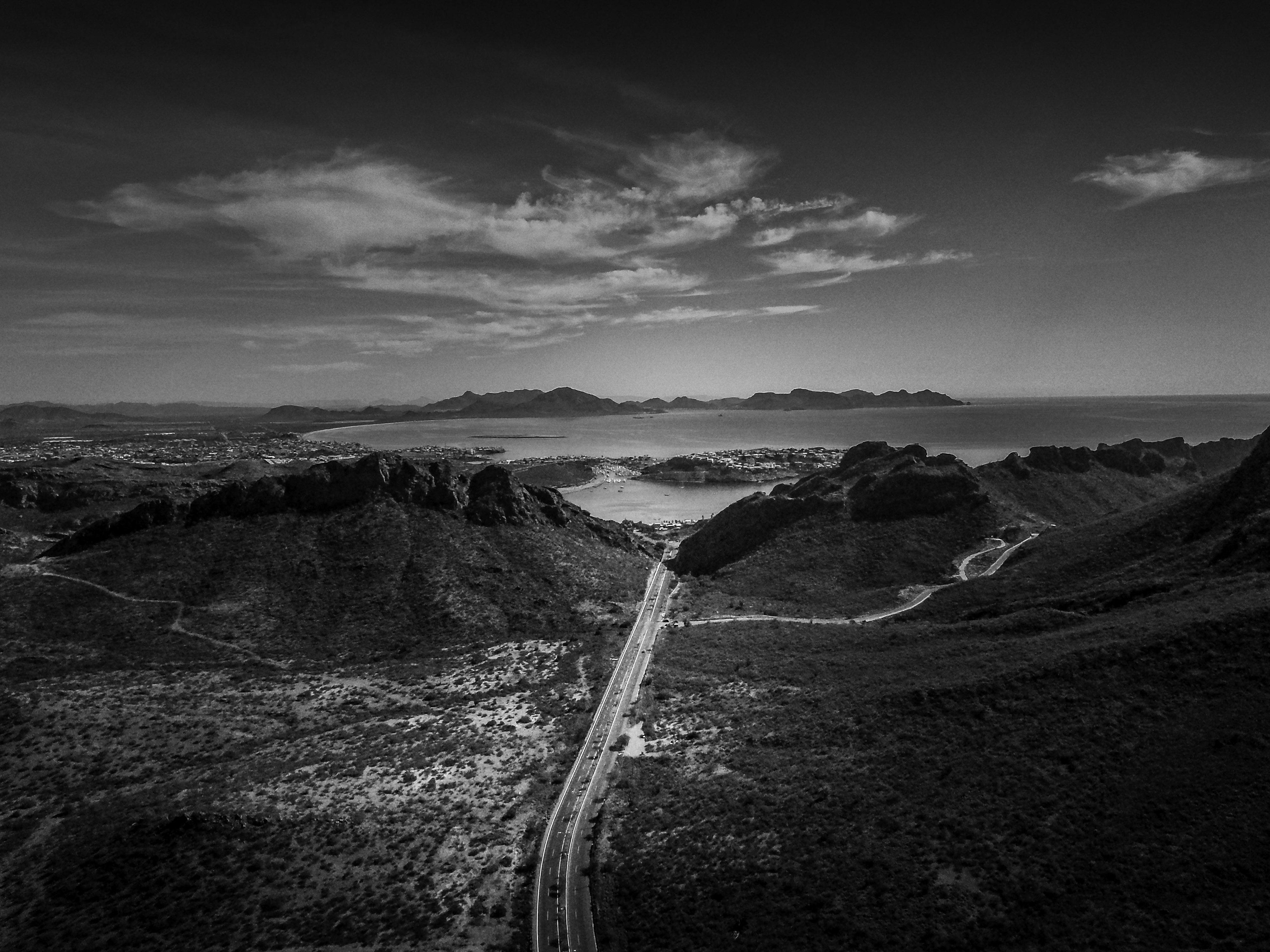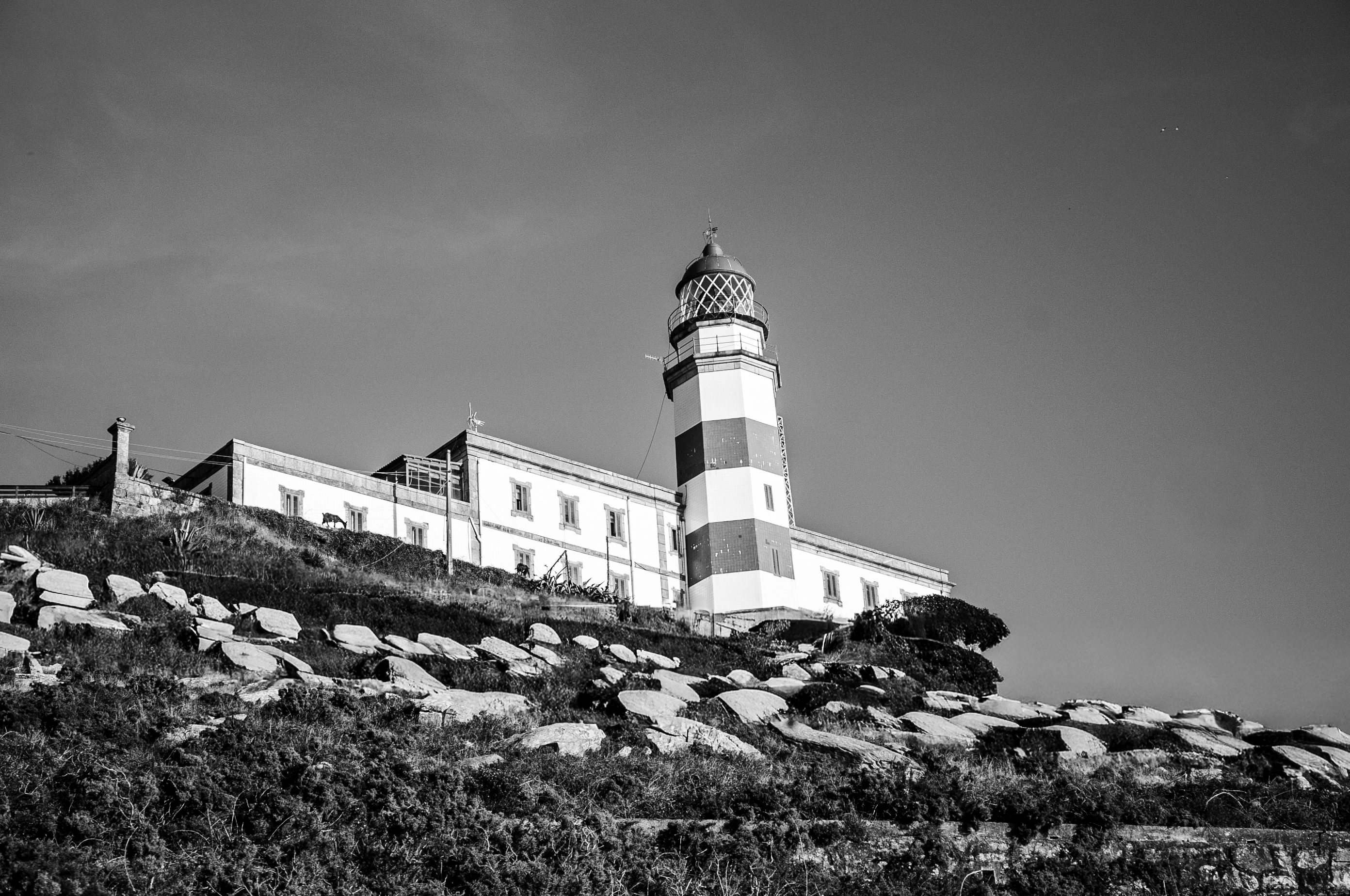 In black and white, the horizon becomes a thought,