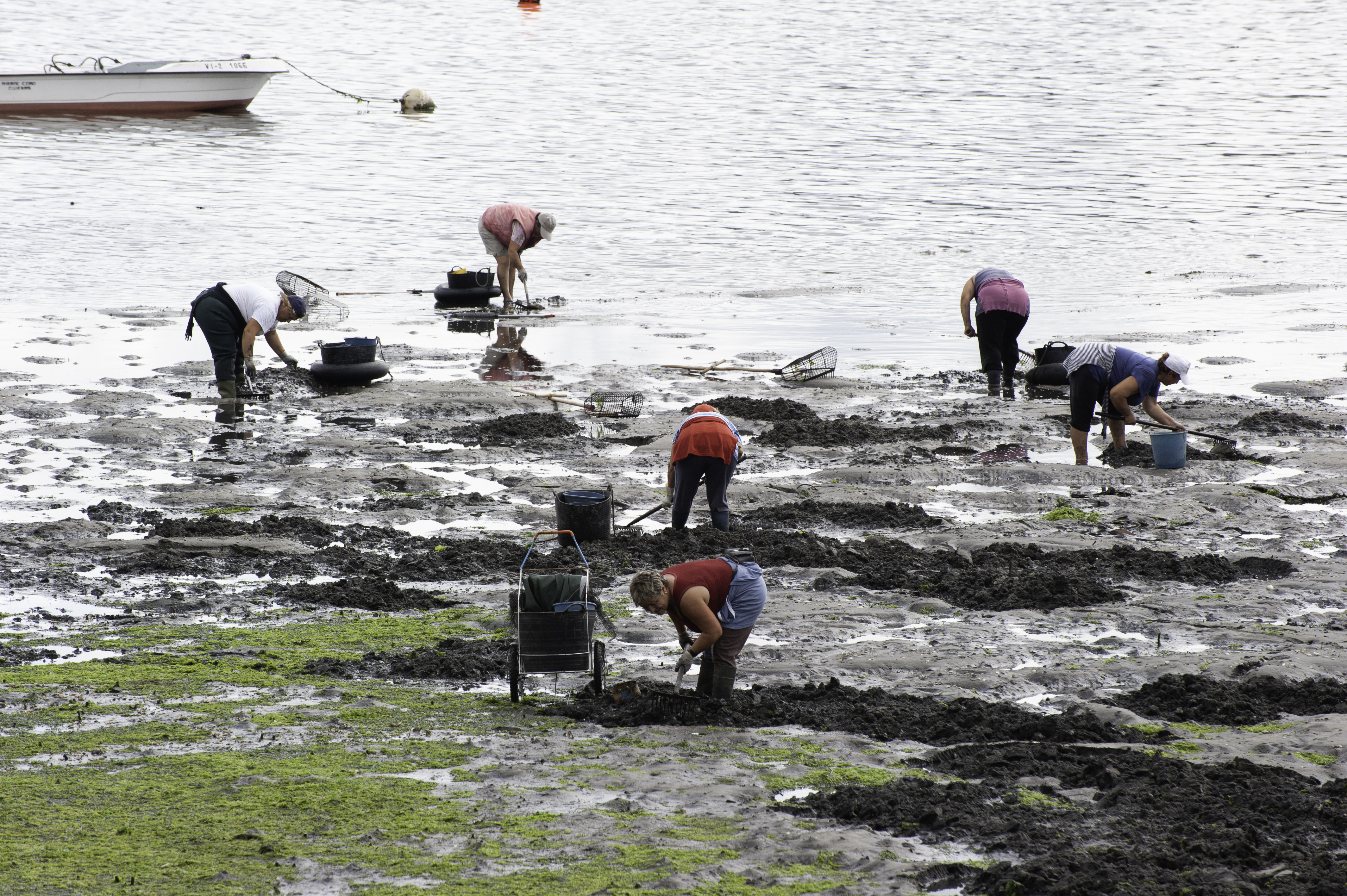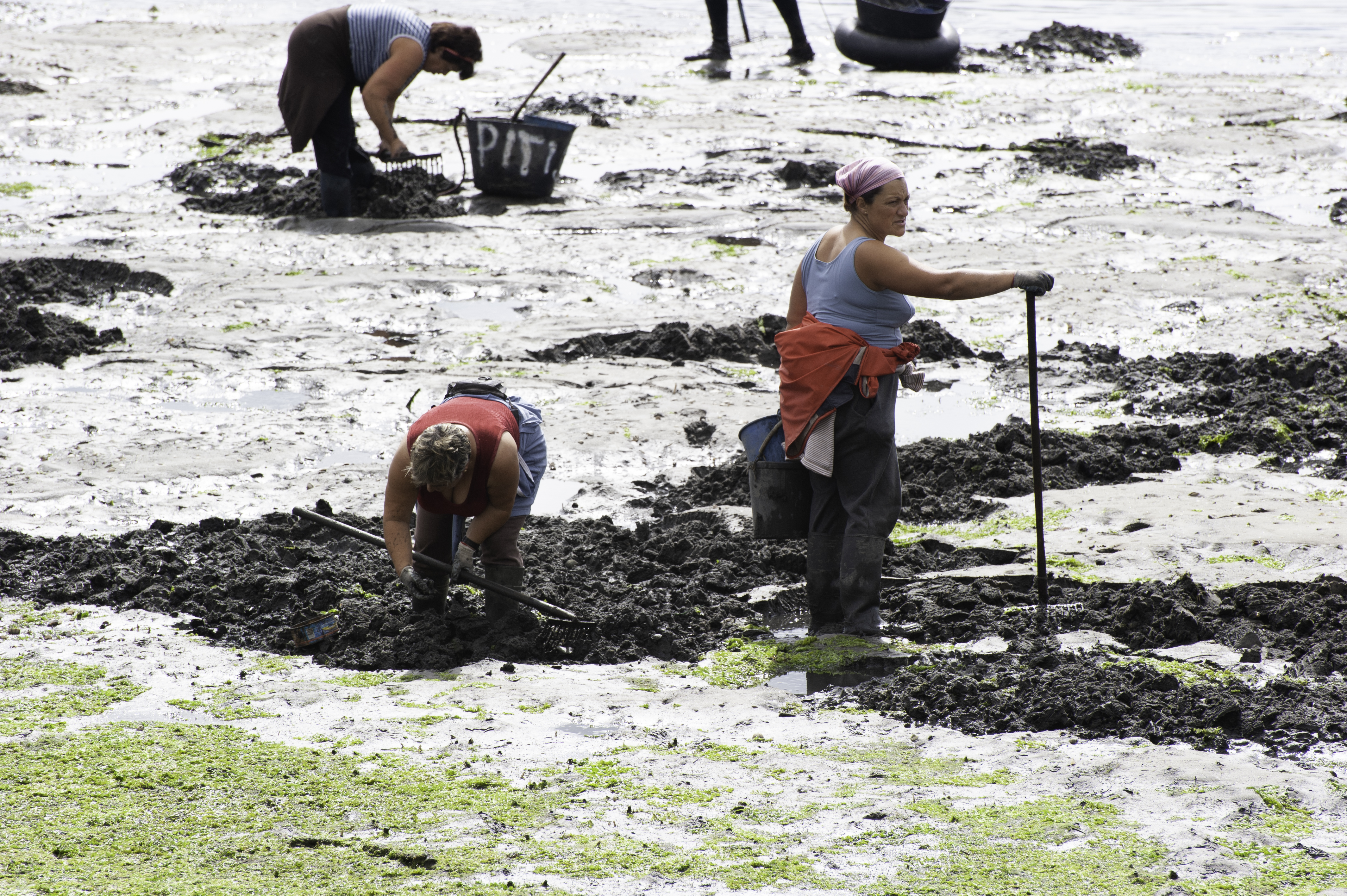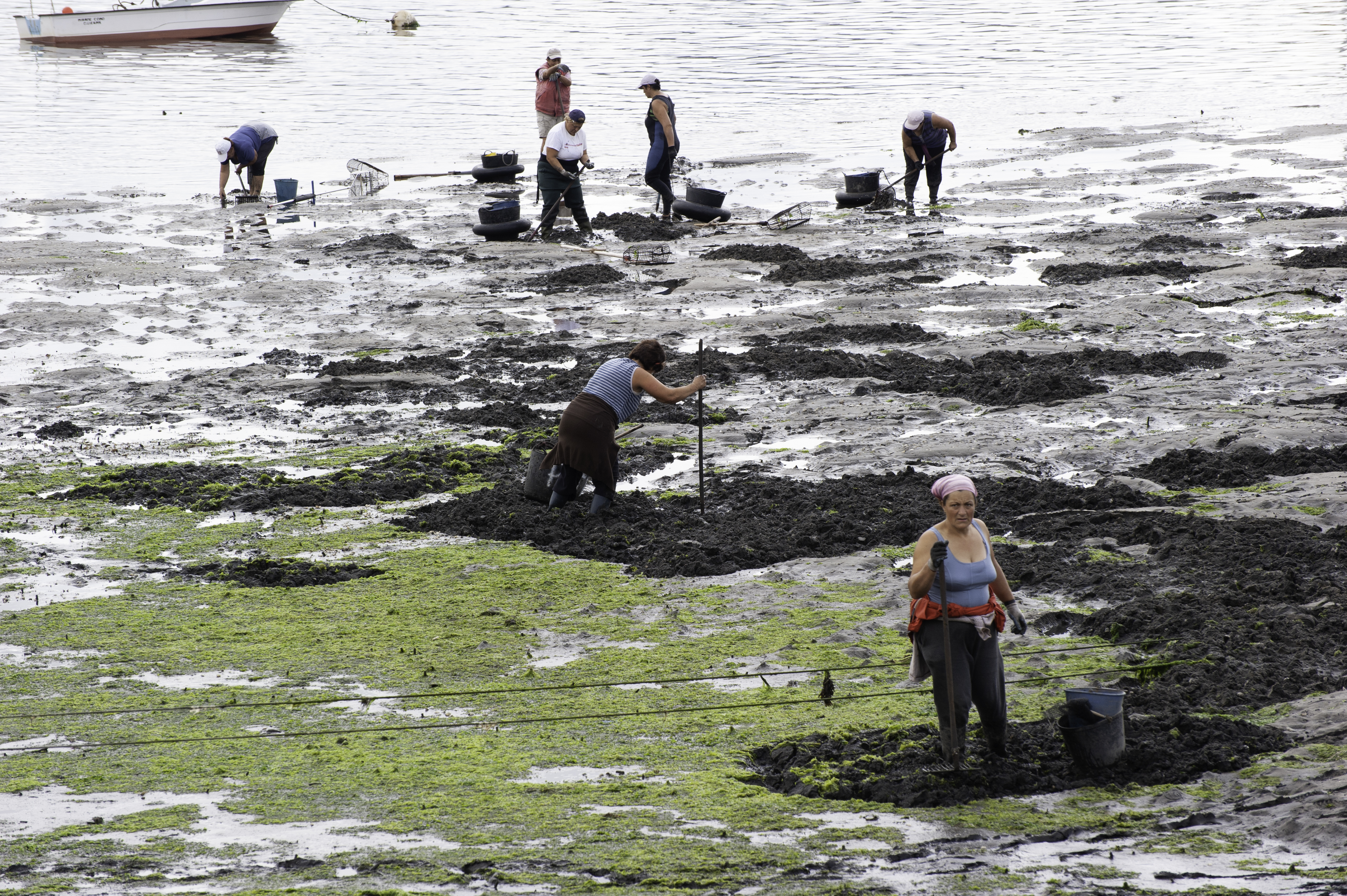 Las marisqueras son mujeres que trabajan en las rías y las costas de Galicia, recolectando marisco cuando la marea desciende. Su labor comienza muchas veces antes del amanecer, cuando el mar se retira y deja al descubierto bancos de almeja, berberecho, navaja y otros frutos del agua.