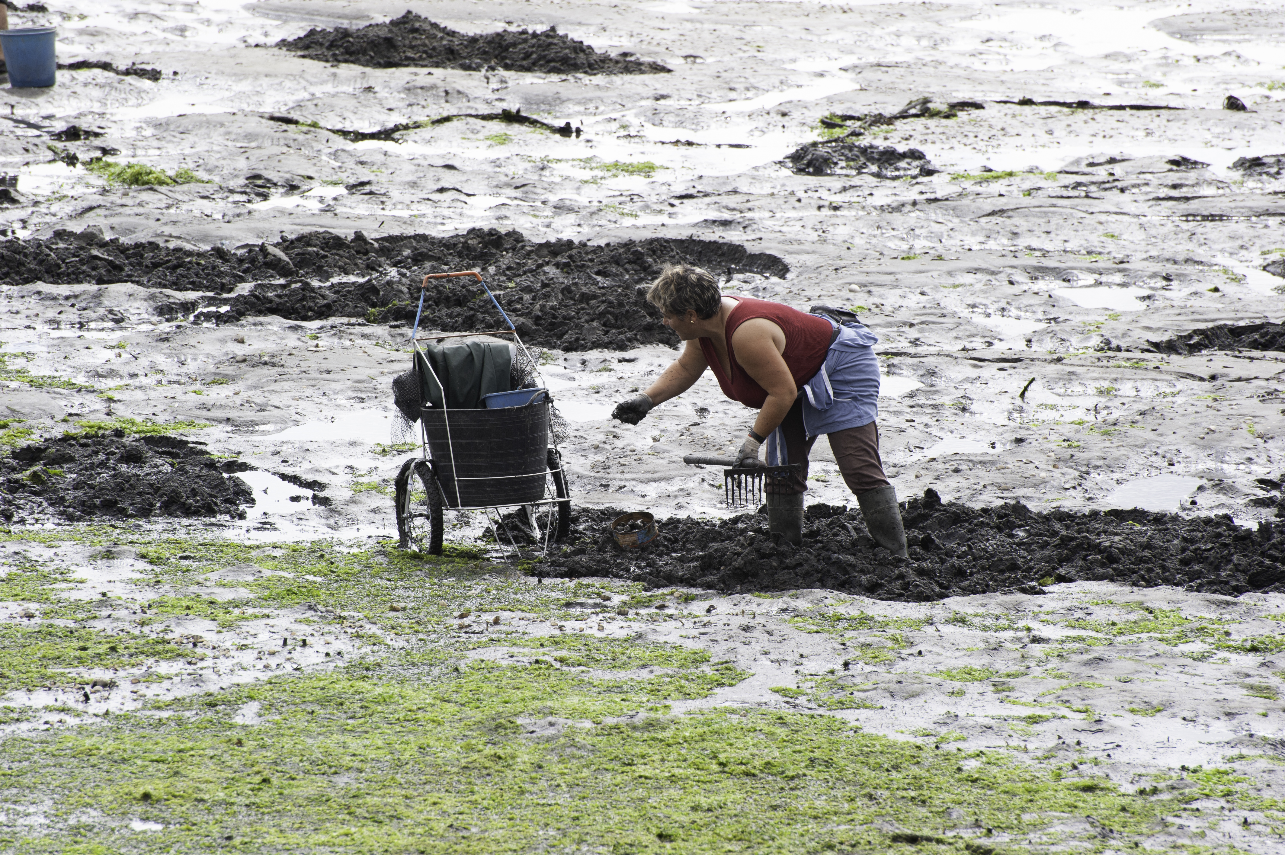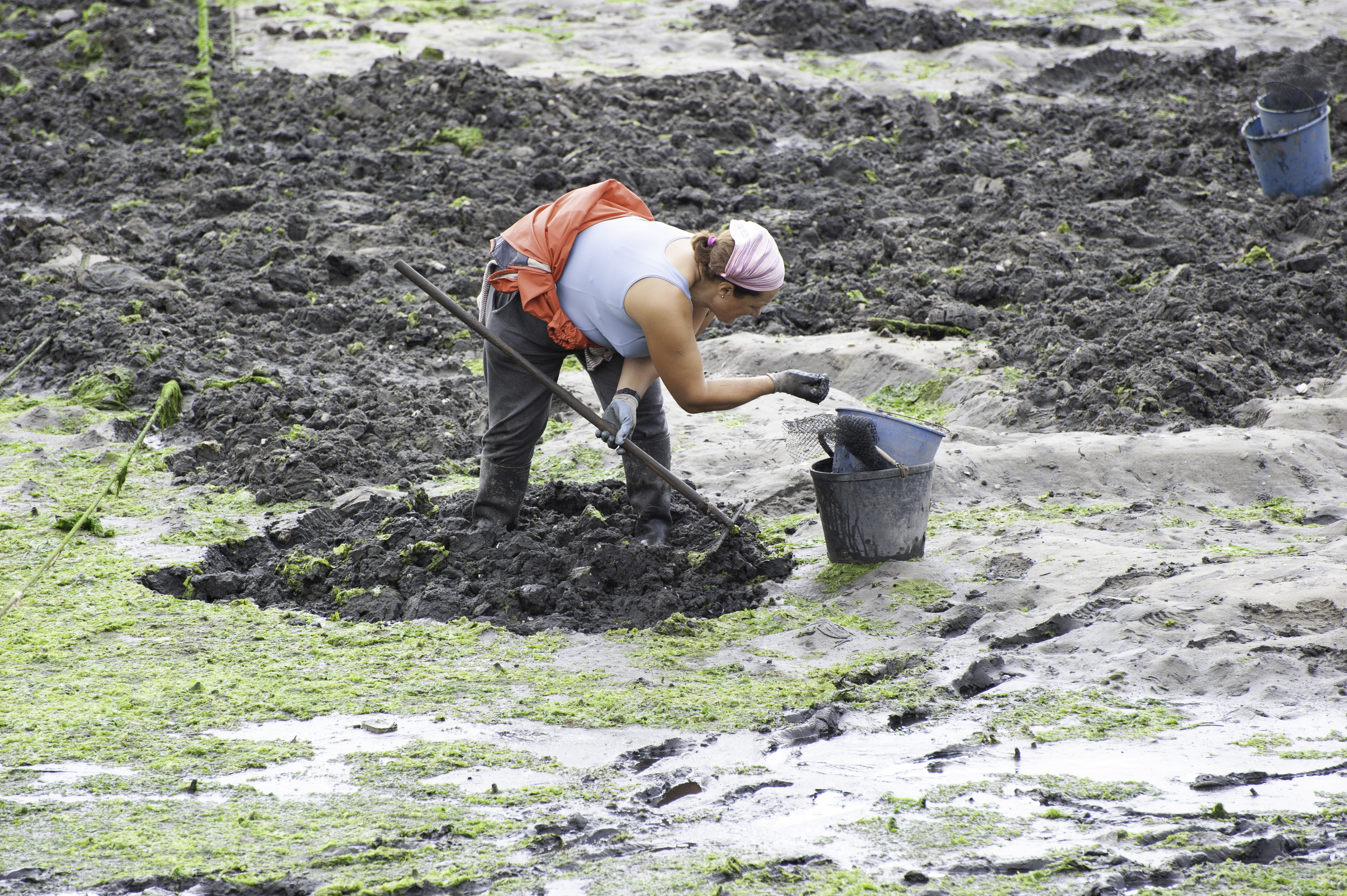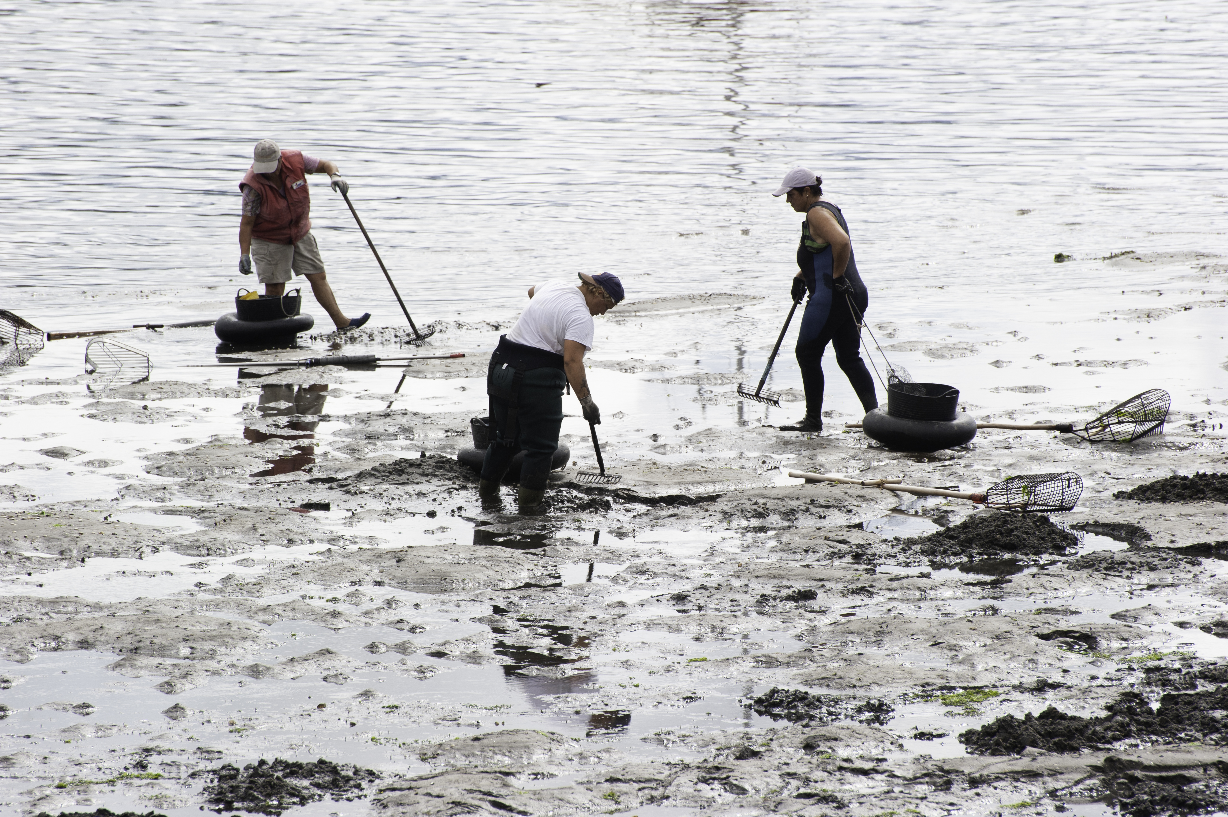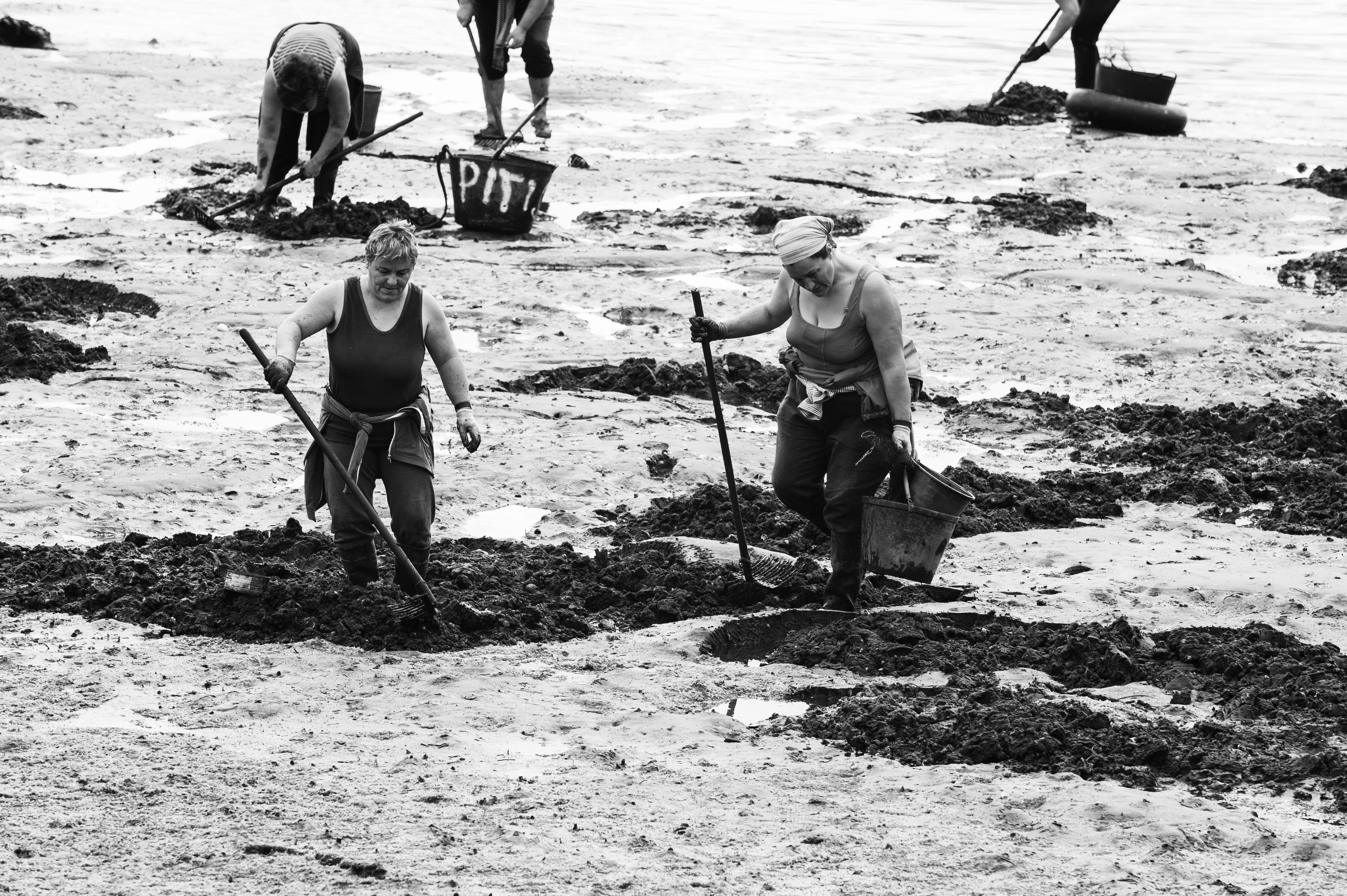 Las marisqueras son mujeres que trabajan en las rías y las costas de Galicia, recolectando marisco cuando la marea desciende. Su labor comienza muchas veces antes del amanecer, cuando el mar se retira y deja al descubierto bancos de almeja, berberecho, navaja y otros frutos del agua.
